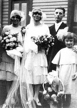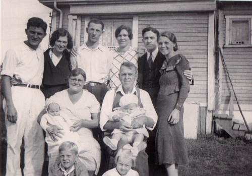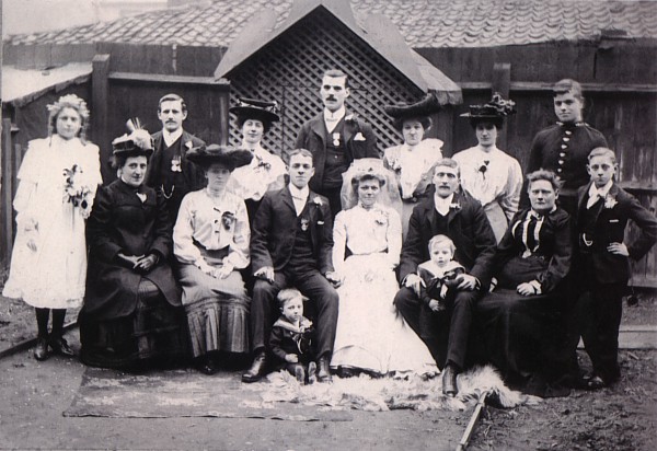 Wedding Picture of Edwin and Agnes Hedger March 2, 1907 Can you help identify some of the people in this picture? This is who we know. Front row - Elsie Prudence (Marje's mother's cousin), ?, Ellen Sarah Hedger Cliff (Aunt Nellie), Groom- Edwin Luke Hedger, Bride- Agnes Louisa Wright, John Lewis with son Ron Lewis, ?, ?, Back row - Charles Cliff, ?, ?, ?, Caroline Hedger Lewis (Aunt Carrie), ? |